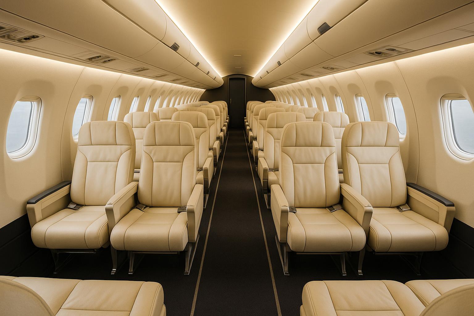 AirVelaris hebt dieses bewährte Flugzeug nun auf ein neues Level: Statt 32 Plätzen verfügt unsere Version über nur 19 luxuriöse Sitze, großzügig gestaltet und auf maximalen Komfort ausgelegt. Zusammen mit einem eleganten, dunklen Design, persönlichem Service und dem klaren Fokus auf Zeitersparnis entsteht so ein völlig neues Reiseerlebnis – Boutique Aviation, die europaweit einzigartig ist.